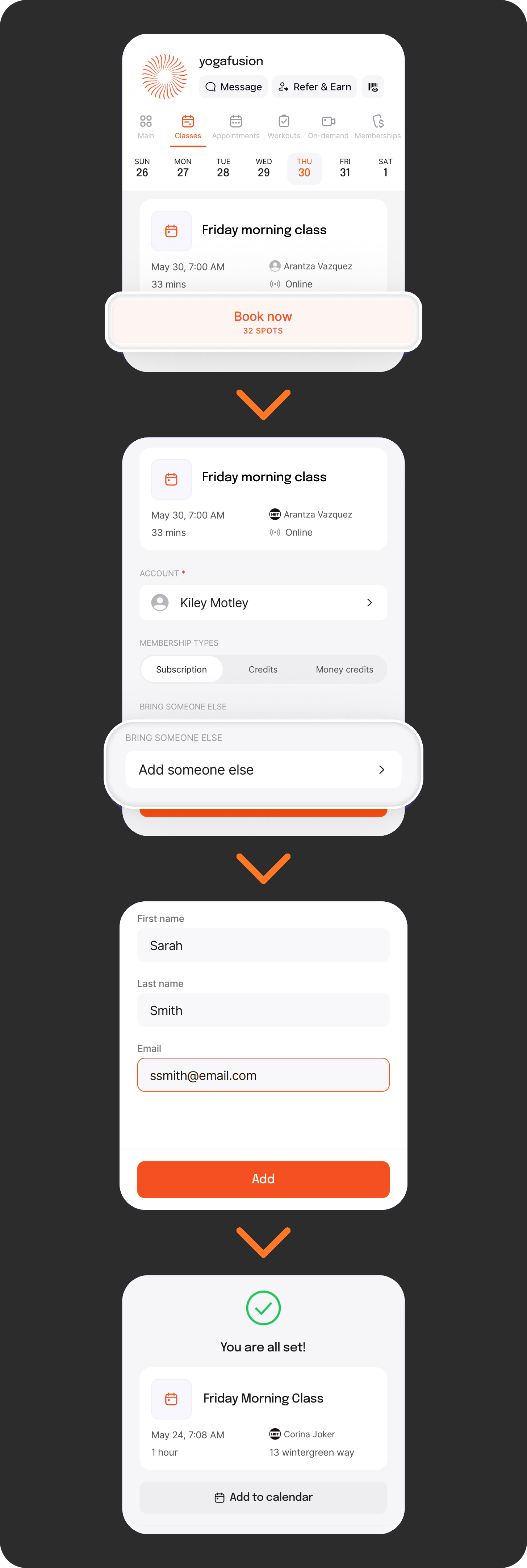 Definitely — yoga is even better with friends. You can add a guest when booking online, through our app, or just let us know at the desk.